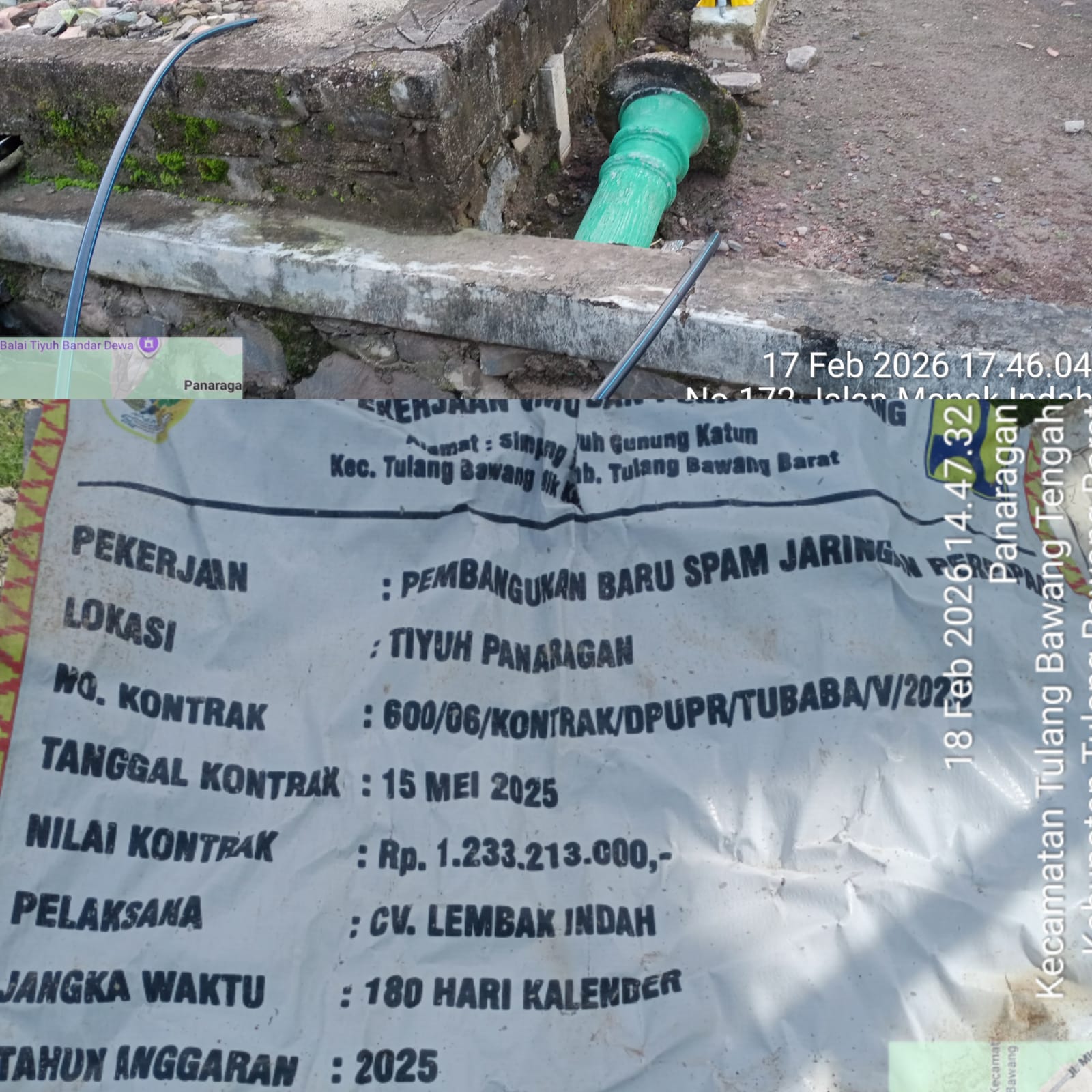 Tulang Bawang Barat, lingkarmerah.my.id – Proyek Penyediaan Air Minum (PAM) senilai Rp1.233.213.000 di Tiyuh Panaragan, Kabupaten Tulang Bawang Barat (Tubaba), kini menuai sorotan keras. Meski secara administrasi dinyatakan selesai, hingga Kamis (19/2/2026) air bersih yang dijanjikan belum juga mengalir ke rumah warga.