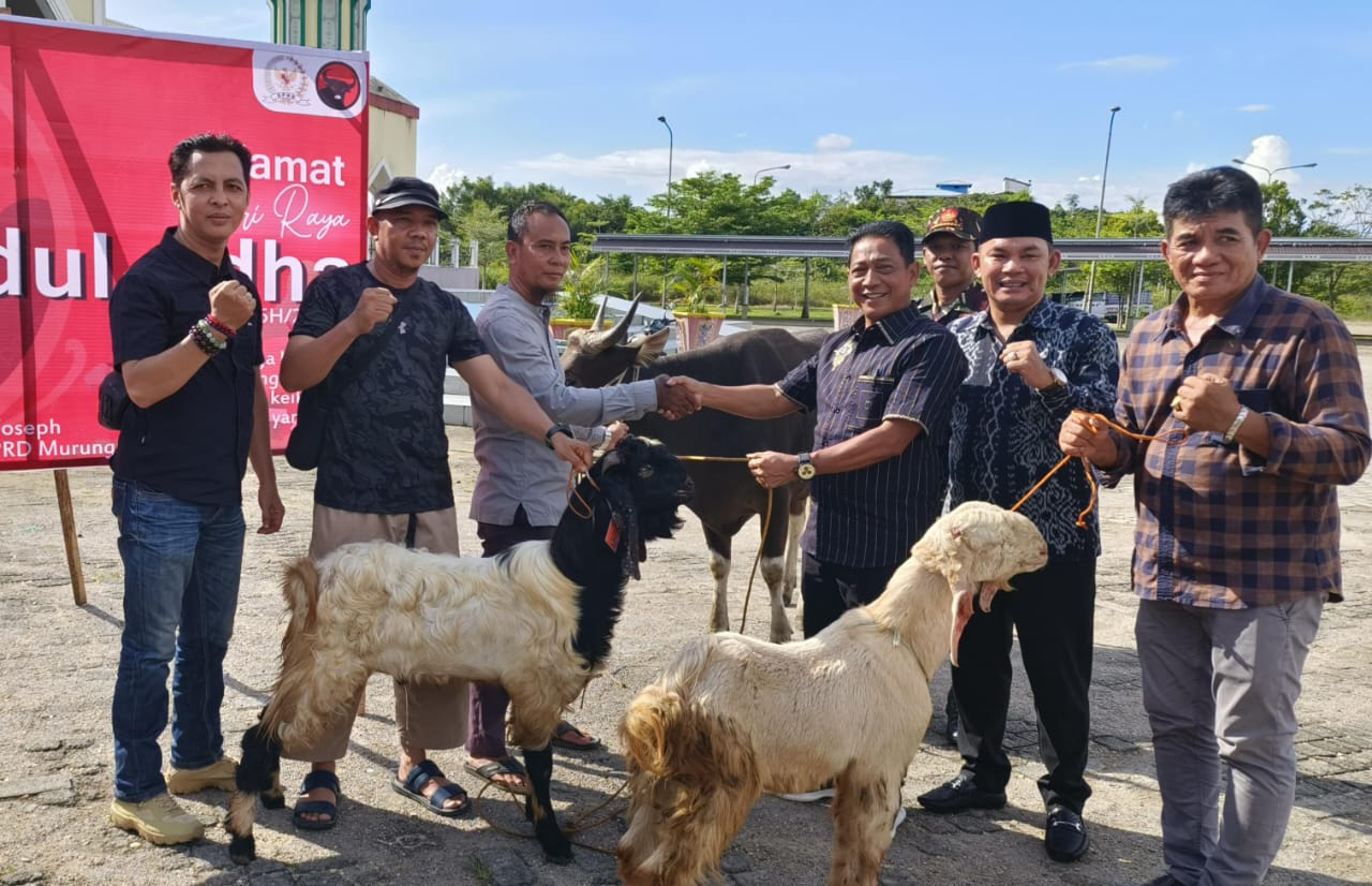 PURUK CAHU, lingkarmerah.my.id – Anggota DPRD Kabupaten Murung Raya, Kalimantan Tengah, Heriyus M. Yoseph, S.E, menyerahkan sebanyak Tiga Ekor Hewan Kurban berupa dua Ekor Kambing dan satu Ekor Sapi kepada pengelola Masjid Agung Al-Istiqlal, dalam rangka Hari Raya Idul Adha 1445 Hijriyah tahun 2024.