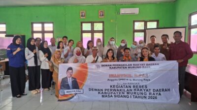 PURUK CAHU, lingkarmerah.my.id – Dalam rangka Reses Masa Sidang I Tahun 2026, dua Anggota DPRD Kabupaten Murung Raya, Imanudin, S.Pd.I dari Partai Keadilan Sejahtera (PKS) dan Olivia Wiswanti, S.E dari Partai Golongan Karya (Golkar), melaksanakan kegiatan reses di Daerah Pemilihan (Dapil) I Kecamatan Murung, dan Kecamatan Tanah Siang Selatan.