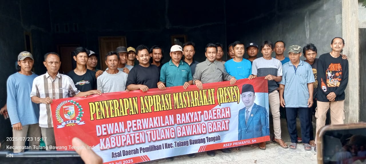 Tulang Bawang Barat, lingkarmerah.my.id – 23 Juli 2025, Anggota DPRD Kabupaten Tulang Bawang Barat (Tubaba) dari Fraksi Partai Amanat Nasional (PAN), Asep Priwanto, SH, menggelar kegiatan reses tahun 2025 di kediamannya yang berlokasi di Desa Bambu Kuning, Kelurahan Panaragan Jaya, Kecamatan Tulang Bawang Tengah, Rabu (23/07/2025).