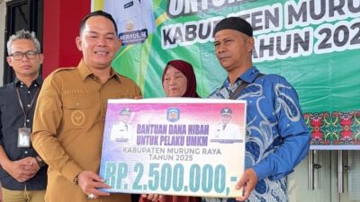 Dalam kegiatan itu, Pemerintah Kabupaten Murung Raya menyerahkan dana hibah kepada pelaku UMKM perorangan dengan nilai sebesar Rp2.500.000 per penerima. Program ini merupakan bagian dari komitmen pemerintah daerah dalam mendorong pertumbuhan ekonomi kerakyatan dan meningkatkan kesejahteraan masyarakat melalui penguatan sektor UMKM.