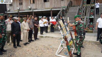 PURUK CAHU, lingkarmerah.my.id – Bupati Murung Raya (Mura) Heriyus bersama Ketua DPRD Murung Raya Rumiadi, S.E., S.H., M.H., menghadiri kegiatan penyambutan Komandan Batalyon Infanteri TP 883/Temanggung Awan, Mayor Inf Supriyanto, beserta 153 personel di Lopo Betang Puruk Cahu, Rabu (12/11/2025).
