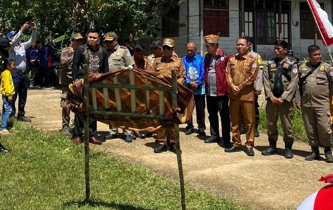 PURUK CAHU, lingkarmerah.my.id – Bupati Murung Raya, Heriyus, bersama rombongan melaksanakan Safari Natal di Kecamatan Sungai Babuat, Senin (15/12/2025). Kedatangan bupati disambut secara adat Dayak melalui prosesi potong hompong di pintu masuk wilayah kecamatan.
