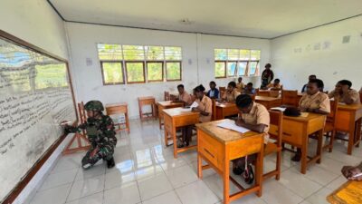 Mamberamo Tengah, lingkarmerah.my.id – Untuk mencerdaskan anak Papua, diperlukan upaya multifaset seperti menyediakan fasilitas belajar yang layak, memberikan bimbingan belajar yang disesuaikan dengan konteks lokal, menanamkan wawasan kebangsaan dan nilai-nilai karakter, Seperti yang dilakukan Satgas TNI Satgas Yonif 521/DY Pos Kelila membantu meningkatkan ilmu pengetahuan kepada murid SMP N Kelila penting untuk meningkatkan kualitas dan akses pendidikan di Papua. (4/10/2025)