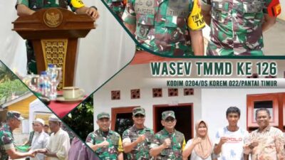 Serdang Bedagai, lingkarmerah.my.id – Danrem 022Pantai Timur Kolonel Inf Sandi Kamidianto, S..P., M.I.P., mendampingi Tim Pengawasan dan Evaluasi (Wasev) Brigjen TNI Joni Pardede, S.sos., dari Markas Besar Angkatan Darat (Mabesad) dalam kegiatan peninjauan pelaksanaan “TNI Manunggal Membangun Desa (TMMD) ke-126 yang dilaksanakan oleh Kodim 0204/Deliserdang. Kamis (30/10/2025).