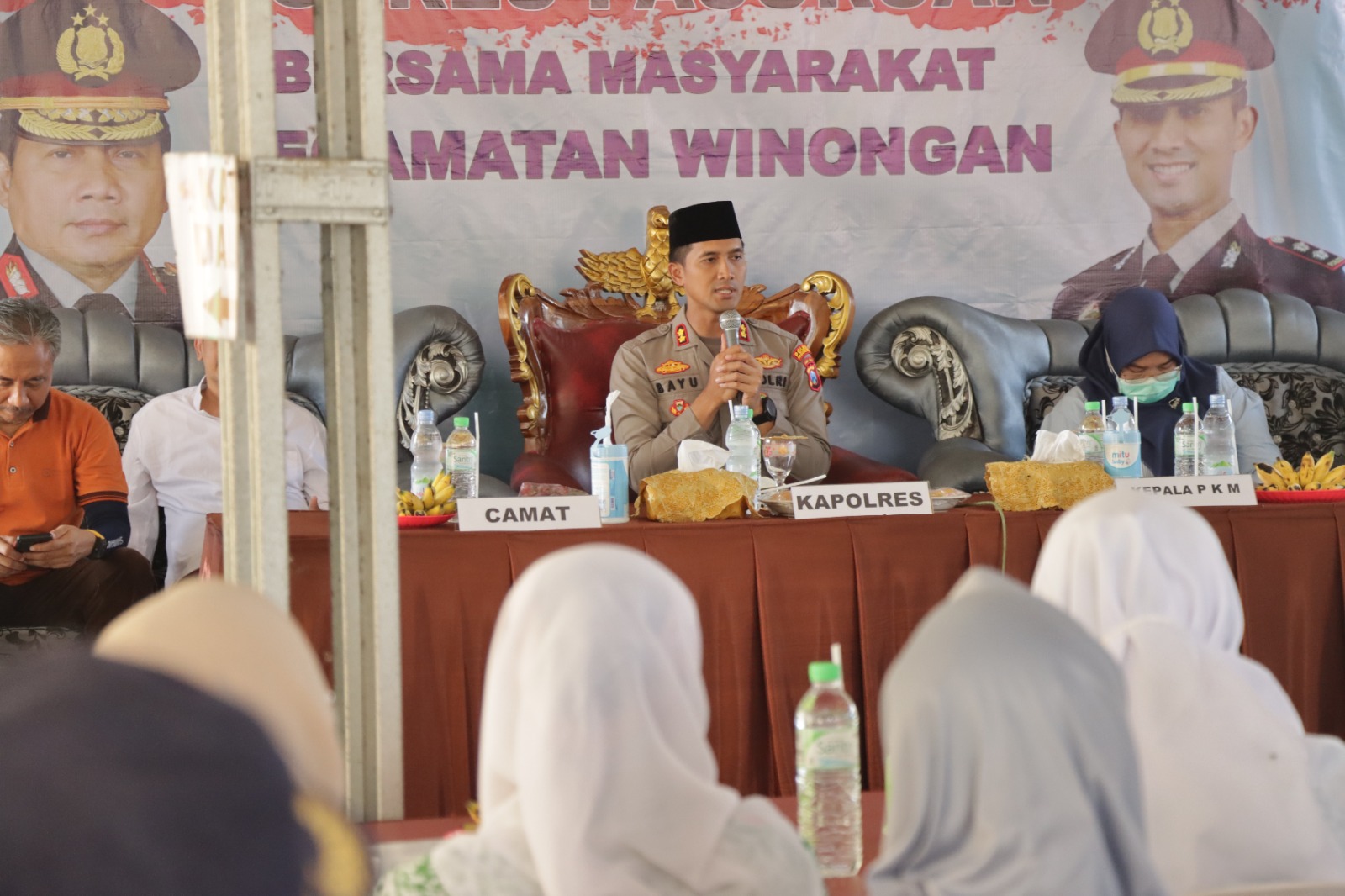 “Kami hadir disini untuk mendengar aspirasi dari masyarakat Kecamatan Winongan dan akan kita tindak lanjuti kedepannya. Marilah kita bersama menanamkan jiwa nasionalisme yang tinggi agar anak cucu kita kedepan bisa menjadi anak yang berguna bagi nusa dan bangsa,” ungkap Kapolres.