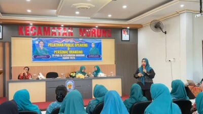 PURUK CAHU, lingkarmerah.my.id – Wakil Ketua I TP-PKK Kabupaten Murung Raya, Dina Maulidah, menjadi narasumber dalam pelatihan Public Speaking dan Personal Branding bagi kader TP-PKK se-Kecamatan Murung yang digelar di Aula Kantor Kecamatan Murung, Jumat (5/12/2025).