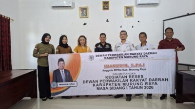 PURUK CAHU, lingkarmerah.my.id – Dalam rangka Reses Masa Sidang I Tahun 2026, dua Anggota DPRD Kabupaten Murung Raya, Imanudin, S.Pd.I dari Partai Keadilan Sejahtera (PKS) dan Olivia Wiswanti, S.E dari Partai Golongan Karya (Golkar), melaksanakan kegiatan reses di Daerah Pemilihan (Dapil) I Kecamatan Murung.