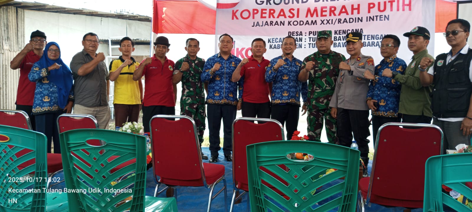 Tubaba, lingkarmerah.my.id – Pembangunan besar-besaran koperasi desa bertajuk “Bangun Koperasi Desa, Indonesia Jaya” resmi dimulai. Kodam XXI/Radin inten melalui jajaran Kodim 0412/Lampung Utara melaksanakan groundbreaking Koperasi Merah Putih di Tiyuh Pulung Kencana, Kecamatan Tulang Bawang Tengah, Kabupaten Tulang Bawang Barat (Tubaba), Jumat (17/10/2025).