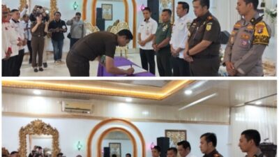 Barito Utara, Lingkarmerah.my.id – Kepala Kejaksaan Negeri Barito Utara, Provinsi Kalimantan Tengah, Fredy Feronico Simanjuntak, S.H., M.H, bersama Kepala Seksi Intelijen Widha Sinulingga, S.H., M.H., menghadiri penandatanganan Perjanjian Kerja Sama antara Seksi Intelijen Kejaksaan Negeri Muara Teweh dan Dewan Pimpinan Cabang Asosiasi Badan Permusyawaratan Desa Nasional (DPC-ABPEDNAS). Kerja sama ini terkait optimalisasi pelaksanaan Program Jaksa Garda Desa (Jaga Desa). Kegiatan berlangsung di Aula Barakati pada Rabu (19/11/2025).