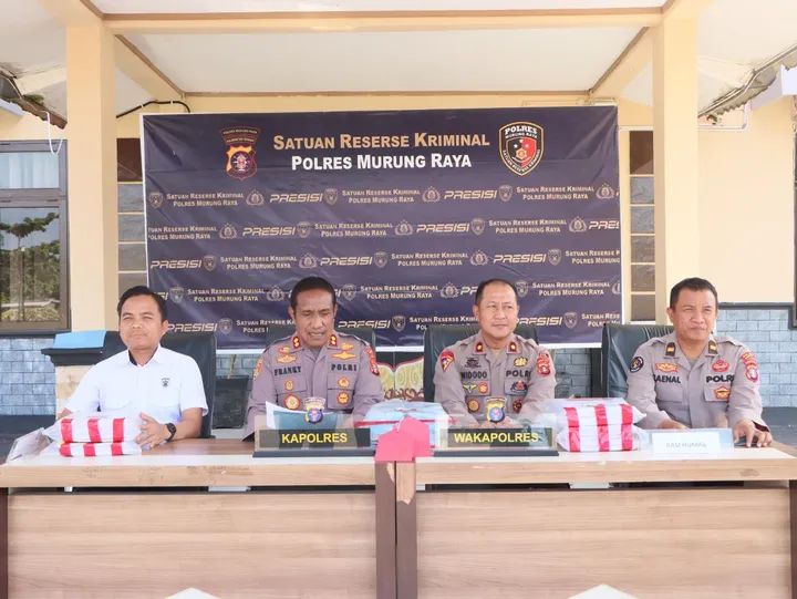 Konferensi Pers dipimpin langsung oleh Kapolres Murung Raya, AKBP Franky M. Monathen, S.I.K., didampingi Wakapolres Kompol Puji Widodo, KBO Reskrim Ipda Marelo Antonius dan Kasi Humas Ipda Zaenal Arifin dihalaman Mapolres setenpat, Rabu (21/1/2026).