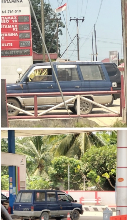 Terlihat pelaku bernama M Aras secara terang-terangan menggunakan dua unit kendaraan roda empat dengan Nomor Plat : DA 7297 TLA Warna Biru Silver, sedangkan mobil yang satunya bernomor No pol DA 1523 BB Warna Putih Merk Mitaubhisi Cold diduga dikendarai anak M Aras. Kedua unit mobil tersebut datang berulangkali ke SPBU untuk membeli pertalite menggunakan puluhan Barcode dan di isi dalam tangki mobil itu sendiri yang sudah dimodifikasi agar dapat menampung BBM dengan jumlah yang banyak, tangki itu juga sudah dilengkapi selang pengisap. Selanjutnya mobil yang sudah berisikan BBM Bersubsidi jenis pertalite diangkut dalam jumlah besar tanpa izin menuju kepenampungan miliknya. Menurut warga, M Aras kebal hukum hingga nekat terang terangan melansir BBM di SPBU. Bukan itu saja bahkan M Aras menurut para pelansir yang lain diduga berani menantang media untuk memberitakan aksinya.