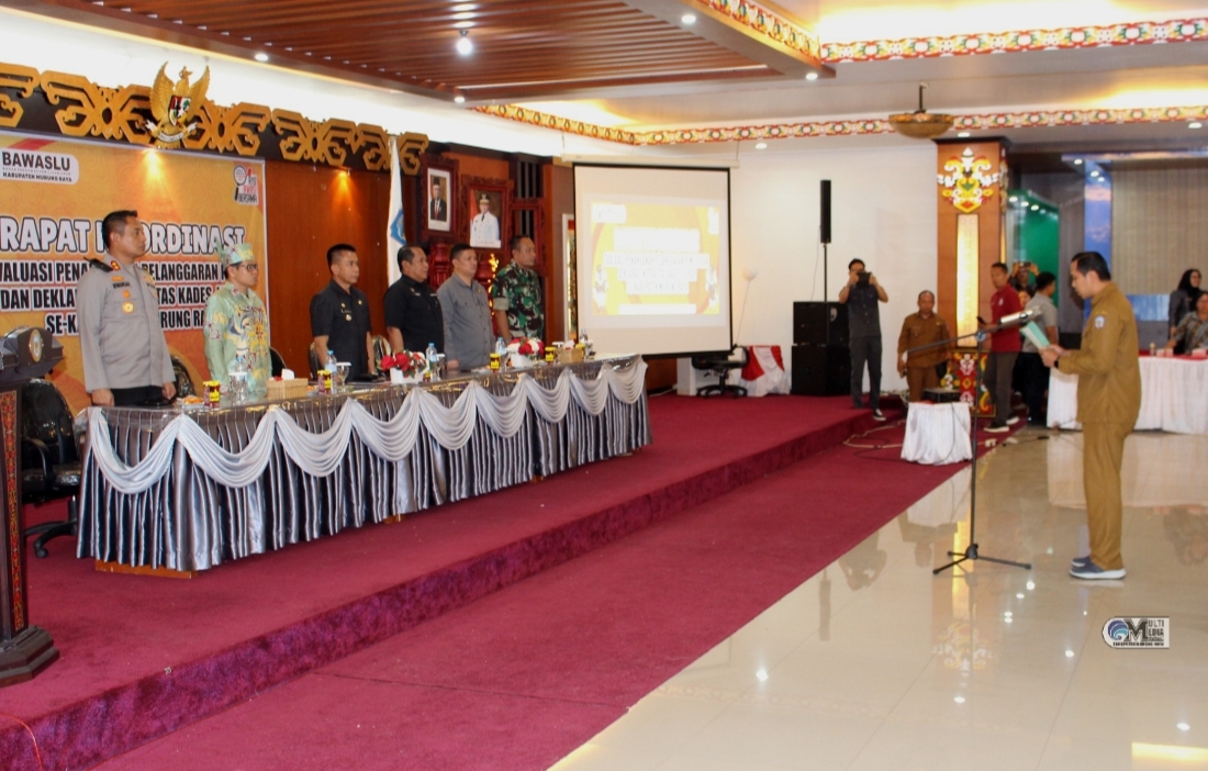 PURUK CAHU, lingkarmerah.my.id- Pj Bupati Murung Raya (Mura), Dr Hermon membuka secara resmi kegiatan Rapat Koordinasi (Rakor) Evaluasi Penanganan Pelanggaran Pemilu dan Deklarasi Netralitas di Aula Cahai Ondhui Tingang, Jumat (27/9/2024).