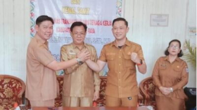 PURUK CAHU, lingkarmerah.my.id –  Penjabat (Pj) Sekretaris Daerah Kabupaten Murung Raya, Drs. Sarwo Mintarjo, menghadiri acara serah terima jabatan (sertijab) Pelaksana Tugas (Plt) Kepala Dinas Transmigrasi dan Tenaga Kerja (Disnakertrans) Kabupaten Murung Raya dari K. Zen Wahyu kepada Hendra Hadikusuma.