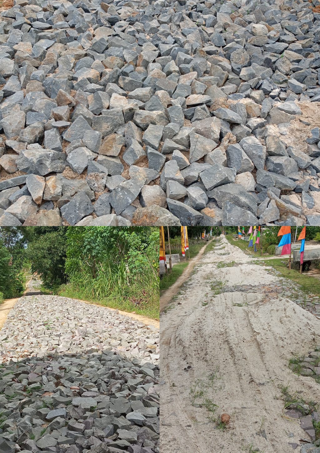 Pantauan langsung di lapangan menyingkap fakta mencengangkan. Susunan batu onderlagh dipasang serampangan, posisi tidur dengan jarak renggang, tanpa batu pengunci, serta tidak pernah dipadatkan menggunakan wales atau roller.