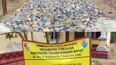 Tubaba, lingkarmerah.my.id – Pembangunan jalan onderlah di Suku 004 RT 016, Tiyuh Makarti, Kecamatan Tumijajar, Kabupaten Tulang Bawang Barat (Tubaba), Lampung, disorot tajam warga. Proyek dengan anggaran fantastis Rp91.085.000 itu diduga hanya dijadikan lahan bancakan oknum dan dikerjakan asal-asalan.