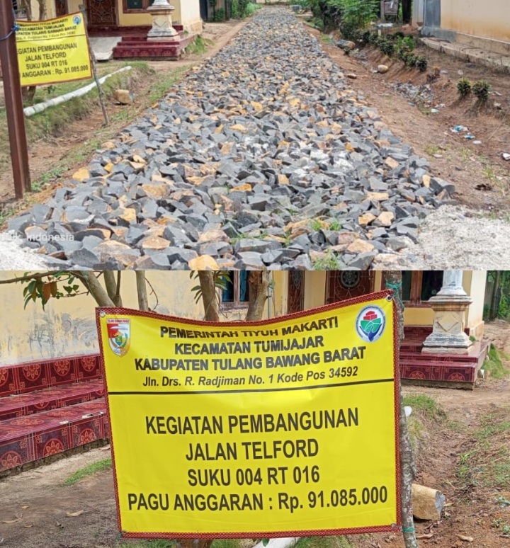 Tubaba, lingkarmerah.my.id – Pembangunan jalan onderlah di Suku 004 RT 016, Tiyuh Makarti, Kecamatan Tumijajar, Kabupaten Tulang Bawang Barat (Tubaba), Lampung, disorot tajam warga. Proyek dengan anggaran fantastis Rp91.085.000 itu diduga hanya dijadikan lahan bancakan oknum dan dikerjakan asal-asalan.