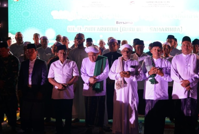 PURUK CAHU, lingkarmerah.my.id – Ribuan masyarakat Kabupaten Murung Raya (Mura) memadati halaman Masjid Agung Al-Istiqal Puruk Cahu untuk menghadiri kegiatan Tabligh Akbar dan Murung Raya Bershalawat bersama KH. M. Zhofaruddin atau yang akrab disapa Guru Udin Samarinda, Kamis (23/10/2025) malam.