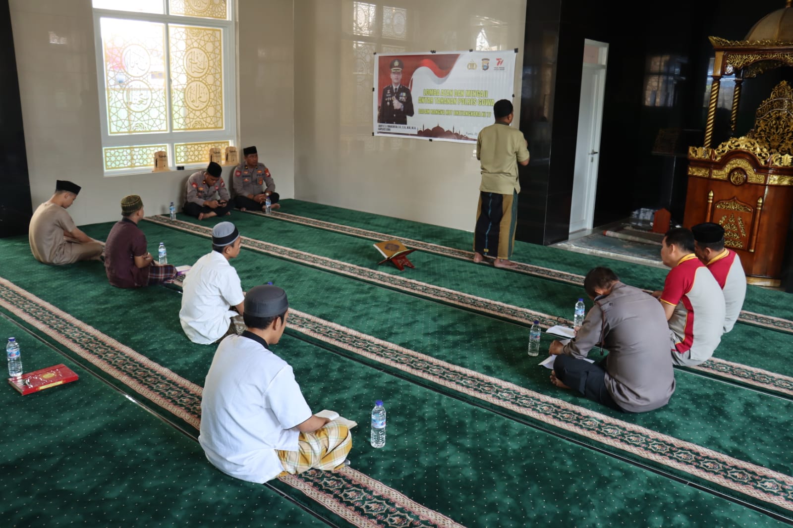 Kapolres Gowa AKBP R.T.S Simanjuntak, S.H., S.I.K., M.M., M.I.K. melalui Wakapolres Gowa KOMPOL Soma Mihardja, S,Sos, MM mengatakan, lomba adzan dan baca Al-qur’an antar tahanan diadakan untuk memperingati hari Bhayangkara yang ke 77.