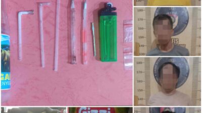 Selain mengamankan terduga pelaku, anggota juga menyita barang bukti berupa : 1 buah tabung kaca pirek berisi residu diduga sisa sabu, 1 alat hisap (bong) dari botol bekas, 3 selang pipet,1 sendok sabu, 1 sumbu pembakar, 1 korek api gas, 3 bungkus plastik klip kecil kosong, 1 kaleng aluminium merk Gizzi warna kuning, 1 unit sepeda motor Honda Revo warna biru.