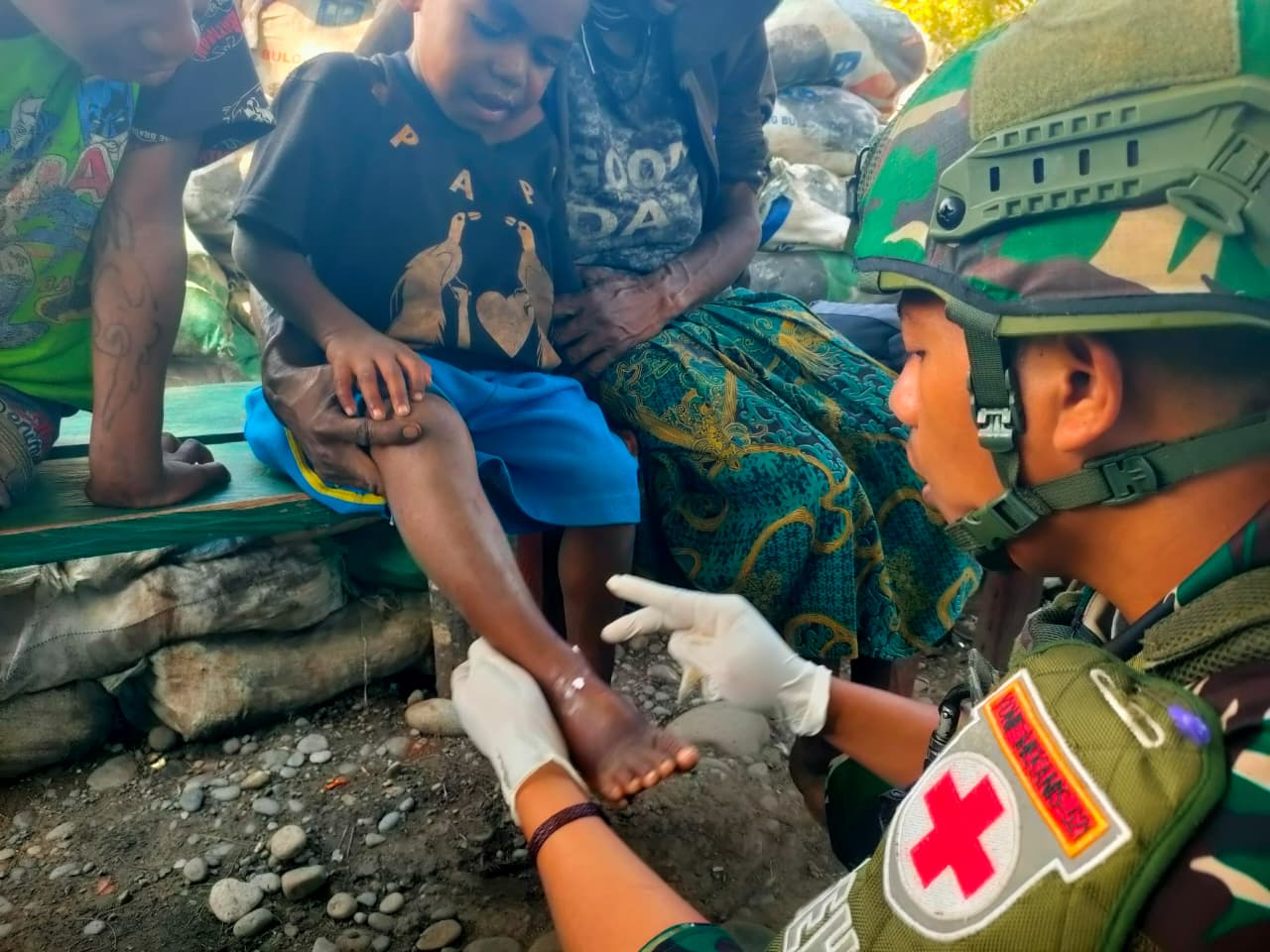 Dalam Pelayanan kesehatan yang diberikan oleh TNI di daerah Walesi atau sekitarnya, yang berfokus pada senyuman dan keramahan saat memberikan pelayanan medis kepada warga dan menggambarkan pelayanan kesehatan yang tulus dan penuh empati, seperti yang dilakukan oleh Satgas Pengamanan (Satgas) Yonif 521/DY.