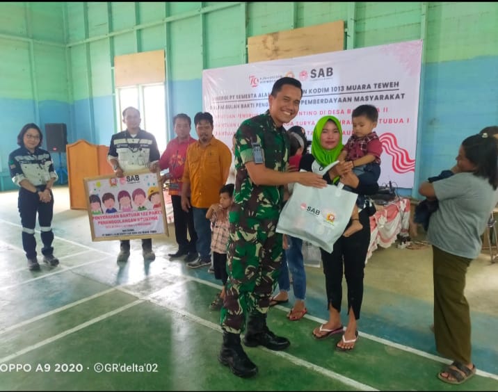 Kegiatan Dihadiri Dandim 1013/Mtw Letkol Inf Agussalim Tuo, S.H., M.IP ,Pasi Ops Kodim 1013/Mtw Kapten Inf Trio Pramono, Kapolsek Laung Tuhup, Ipda S. Taufik Hidayat, S.Tr.K ,Persiden Direktur PT SAB Imelda Adhisaputra, KTT. PT. SAB Dedy Waliyan, Head Legal dan Corporate Secretary PT SAB Rangga Dahana Manager HRD PT SAB janet, Kepala Desa Tahujan Laung Jojo, Kepala Desa Batu Bua I Karmawanadi, Lurah Batu Bua II Diwakili Agus, Pemegang Program Gizi Puskesmas Batu Bua Arariaini, Amd.Gz, Penerima Beasiswa Dari PT SAB Wenny Silviana Serta Masyarakat yang Hadir Kurang lebih 100 Orang.