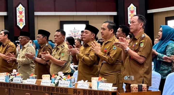 Rapat ini dilaksanakan di Aula Jayang Tingang, Kantor Gubernur Kalimantan Tengah Kalteng, Selasa (12/8/2025).